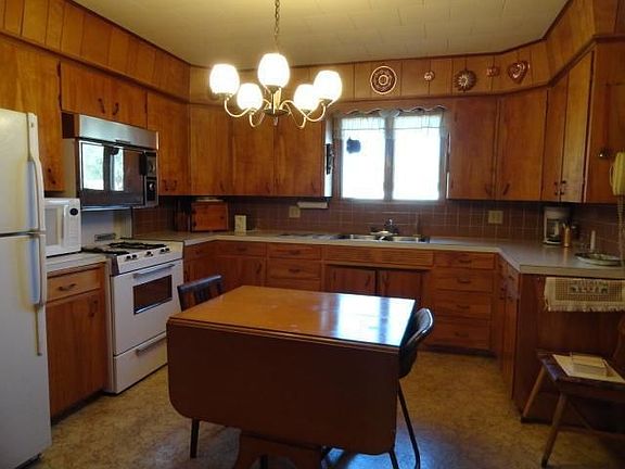 2BR,1BA Home w/ office that could be used as bedroom. Large LR.Eat in kitchen Large mudroom Fireplace in basement and Livingroom. 1 car attached garage and 1 car detached garage 16x28.Lennox Heat in 2010 window cooling.