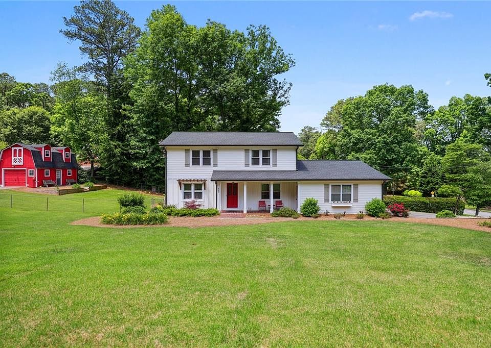 Come explore this one-of-a-kind treasure, a beautifully remodeled, meticulously maintained Smoke Rise home, perfectly situated on a large corner lot. Guests are greeted by a charming covered front porch and modern stained glass front door, adding to the farmhouse elegance. The entry foyer leads to a formal dining room and office. A dream gourmet chef's kitchen is fully updated with breathtaking quartz countertops, handsome tongue and groove ceilings, stainless steel appliances, a pot filler, bright white soft close cabinetry, an expansive island, and an inviting morning/entertaining bar, perfect for gatherings. Other features include a breakfast area and a cozy fireside family room. Hardwood pegged floors add to the magazine-worthy feel! Charming diamond grid casement windows flank the rear of the house with a great view of the expansive wrap-around deck for all of your relaxing and entertaining needs. Rounding out the main level are a 2 car garage, laundry/mud room, bedroom, and 2 full bathrooms. On the upper level, you will find the spacious owner's suite with a walk-in closet, 2 additional bedrooms, and a 3rd full bathroom with tons of storage. This professionally landscaped property leads to a detached red barn garage with a separate driveway, an unfinished loft, and ample storage space for extra vehicles, boats, motorcycles, and RV or perhaps a workshop! The best of indoor and outdoor living in the Camp Creek/Trickum/Parkview cluster. Gwinnett County schools, minutes from the new Tucker shopping/dining spots, US78, I-285, Stone Mountain Park, and more!