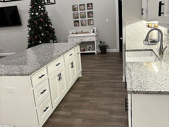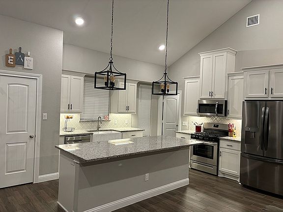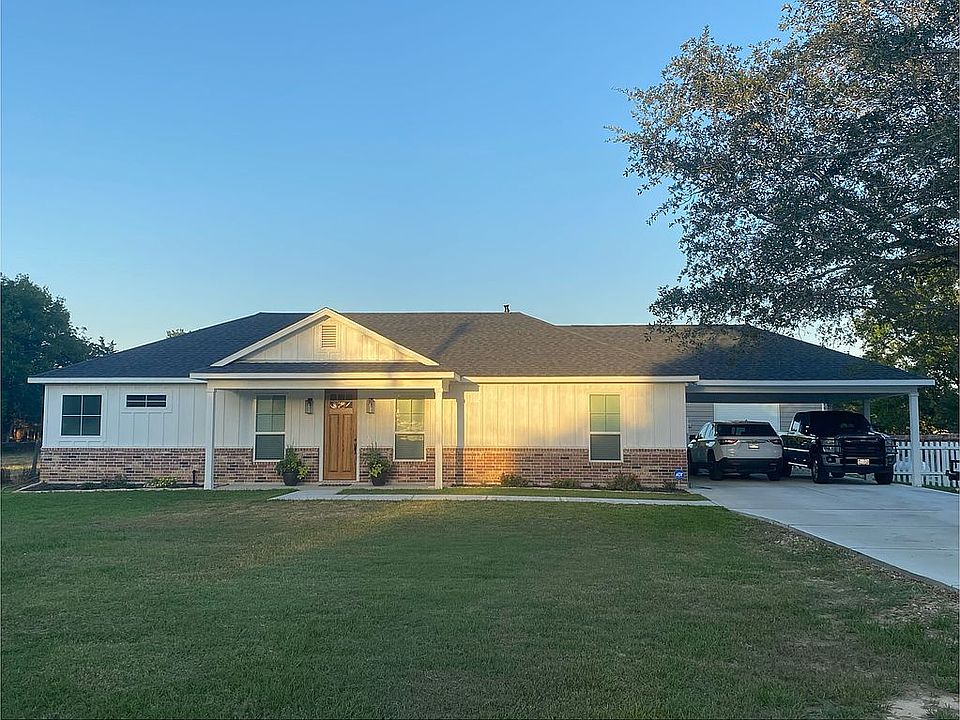 This three bedroom, two bathroom home sitting on .766 acres is located in the EBISD school district. It features an open floor plan with a spacious living area and vaulted ceiling. The kitchen includes an eight foot island, gas stove, and plenty of cabinets for storage. There is flooring throughout the house. All bedrooms have walk in closets. The backyard is fully fenced and has a 24’x30’ shop with a 24’x20’ lean to attached. The shop is equipped with power and water. Please contact for any additional info.