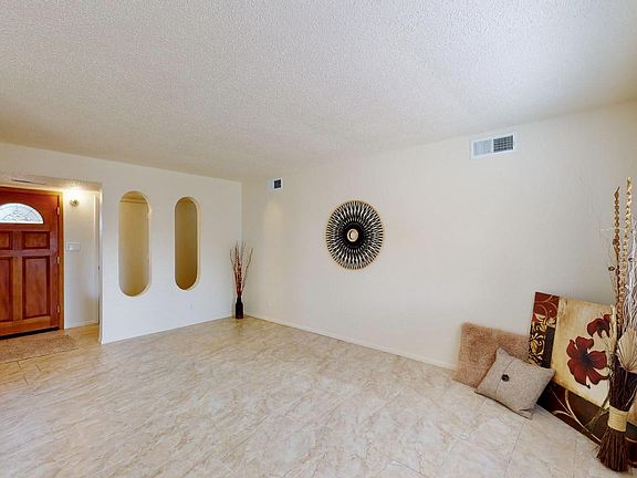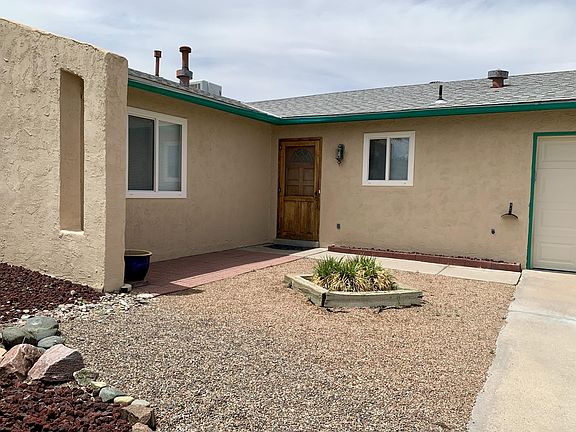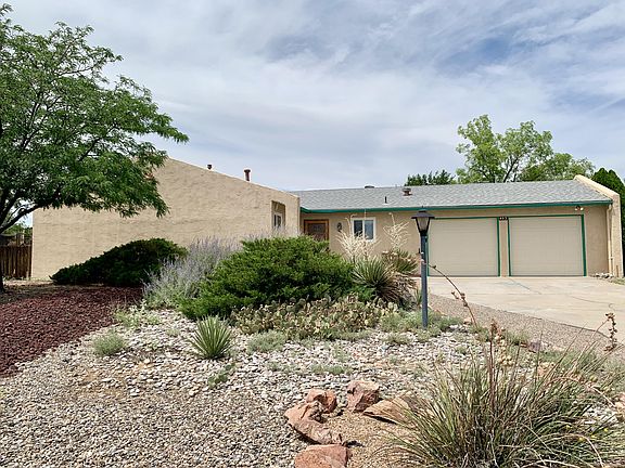 Come see this really nice, move-in-ready home in desirable Corrales Heights, a well established area of Rio Rancho! Walking distance to Rio Rancho Elementary, close to shopping, restaurants, Intel, and all that Rio Rancho has to offer! This home boasts fresh paint throughout, new carpet in bedrooms, new garage doors, new evap cooler, new blinds. Tiled floors throughout living spaces, roof approx. 5-6 years old. Large covered patio--concrete patio installed approx. 2 yrs ago. Storage shed. Backyard perfect for BBQ's, gardening, pets, whatever you enjoy with friends and family! Sandia Mountain views from front! A great place to call home!