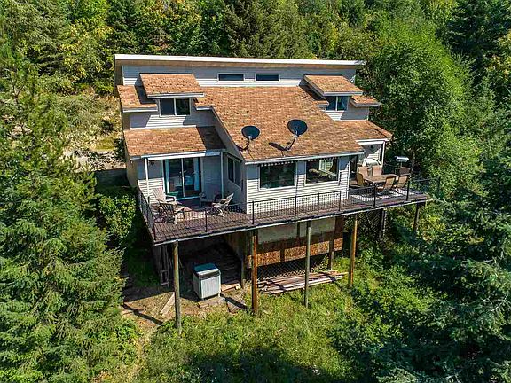 Panoramic views of Lake Cocolalla from this recently remodeled home situated on over 5 acres of forested property. 3 bedroom 2 bath home. Large living room with vaulted TG wood ceiling. Kitchen has newer appliances and custom prep island. Attached dining room with reading bench and lake views. Full deck with new Trex deck on the back perfect entertaining space. Public boat access on Cocolalla Lake is just minutes away. Make this your home away from home today!