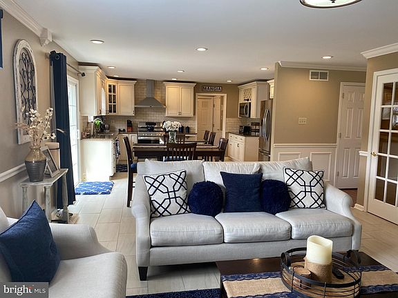 You will fall in love with this upgraded home in beautiful Somerset Walk. From the sweet covered porch entry to the large stamped concrete patio with retractable awning and lush landscaping, there is plenty of outside spaces to enjoy! Cozy nights around the firepit outside, relaxing on the private patio and wandering the neighborhood to the nearby park will give lots of opportunity to enjoy the great outdoors. Once inside, you will love the center hall floorplan! A gracious living room features a side window with window seating, formal dining room to host all your holidays and an open family room and kitchen that can host a crowd! The gourmet kitchen is a chef's delight! Beautifully updated with high end cabinetry, gas 4 burner stove with center griddle area and double convection ovens, stainless appliances and double pantry so you will never run out of storage space! Center island provides additional seating. Granite countertops, travertine backsplash and upgraded lighting make this space the perfect place to gather. The kitchen with travertine tile floor is open to the family with an updated wood burning fireplace. Updated sliding glass door allows access to the picture perfect stamped concrete patio so backyard barbeques are so easy! You will love the upgraded custom millwork throughout the house, refinished wood flooring in the dining room and hall and new wood floors in the living room. The second floor offers spacious bedrooms and two full baths. The primary bedroom with cathedral ceiling leads to a redesigned sitting room which is now a dressing room with additional custom built in closet and shelving. A walk in closet is also accessed through this room giving optimum storage space for everyone! The roomy primary bath features double sinks, upgraded tile, shower with tile shower floor and a jetted soaking tub. Bedrooms are well sized and one features double closets and another has a walk in closet. Hall bathroom with double sinks makes the morning rush a little less hectic. The exceptional finished lower level features a movie area (screen and projector are included), bar and game tables. The home office, school room is an added perk and this level also features a powder room. Additional storage area is also available here. The roof is brand new (October 2020) and many additional updates in this meticulously maintained home mean you can move right in and enjoy all the features the current homeowners have loved for years. Convenient location in Central Bucks School District is close to commuting routes, Valley Square Shopping Center is minutes away, the new Lions Pride Park. Don't wait to see this upgraded home!