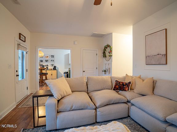 Located in a cul-de-sac in the charming neighborhood of Charleston Park, this 3 bedroom cottage style home is so cute and move in ready. Updated paint, trim and molding were added to the living room, dining room and kitchen giving it a fresh new look. Get cozy on your living room sectional. The current owners sectional pictured is 114x114. Enjoy your morning coffee on the covered front porch. Grill out in any weather on the covered back porch. The rear of the property is lined with mature trees which gives you extra privacy. The back yard is fenced making it easy to allow the fur babies to run. Conveniently located in Swansboro, just 1 mile away from Hammocks Beach State Park, 6 miles to Emerald Isle Beaches, 1/2 mile to Wal-Mart and just a short 15 minute drive to Camp Lejeune. Call today to schedule your showing.