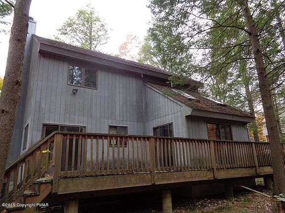 Spacious Contemporary located in the gated community of Holiday Pocono. This home boasts 3 bedrooms, loft, 2 full baths, living room with stone fireplace, dining area with sliding glass doors to the back of the home, kitchen and hot tub room! Plenty of parking in the driveway or 1 car garage.