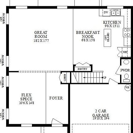 This contemporary home design features 2195 square feet of finished living space.Approaching the Rockford you are greeted with a large 16ft x 6ft useable front porch. You enter the home into an open front room and foyer, which can be closed off with double glass doors for a more private den if need. Continuing through the home you come into a large family room open to the breakfast nook and kitchen. This area is filled with light due to the additional windows and 9ft high ceilings throughout the first floor. This great kitchen is further complimented with a full opening into an optional 10 foot by 16 foot sunroom. The sliding glass door puts glass on 3 sides this room, bathing the rest of the home in light and air. A raised counter top for stool sitting provides additional integration with kitchen.Upstairs the home has 4 bedrooms and 2 full baths. Each bath features double sinks.The master bedroom also features an almost 70 square feet of walk in closet space.
