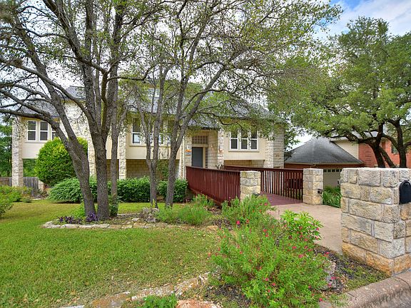 Sunsets and stargazing will be major activities from this custom built contemporary split level home! Double decks take in the long distance hillside views and the South San Gabriel River! Great light in this home from the many windows! Owner's suite, study,family room, kitchen, breakfast, dining and utility are all on the main floor with access out to the top deck. 2 bedrooms and a bath are the bottom floor coming in from the oversized garage with access to the bottom deck! Sloping yard begs for a pool!