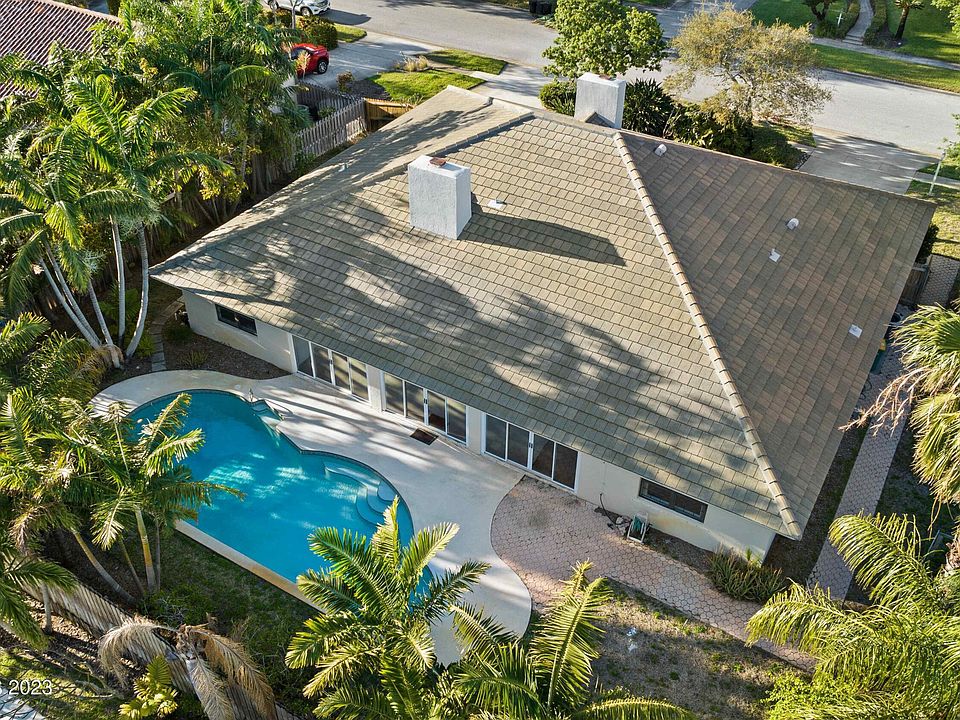 What a surprise package! Stepping inside this 4Bd 3Bth CBS home in the executive neighborhood of Rio Villa, you'll be struck with how spacious it feels! The enormous gathering room with a soaring ceiling, fireplaces and open floor plan kitchen/family room over looking the air conditioned terra cotta sunroom and pool... WOW! This split plan home has 4 oversized bedrooms, three of them with ensuite bathrooms (including the master) and lots of pocket doors that allow for flexibility of living. The kitchen boasts a separate refrigerator and freezer for all your entertaining needs. With some cosmetic updating this executive home will be a stunner! NEW concrete tile roof, NEW AC, fully fenced backyard, whole house vacuum with a freshly painted interior... a MUST see in person!