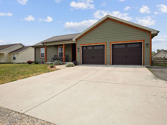 Single owner Custom build home, with loads of upgrades. Smart siding, custom kitchen with hickory cabinets, with soft close drawers, granite countertop, breakfast island. Gas stove, brand new stainless steel refrigerator. Real Hardwood flooring thru out main level. Ample sized laundry with sink, (washer, dryer stay) open floor plan Living/ dining/ kitchen, with split bedrooms, primary one side, other two opposite sides of house. Primary bath has dual sinks, step in shower. Other bath has tub shower combo. Oversized garage with loads of storage space. Partially finished full basement with egress/ bedroom, full bath, recreation area and storage. Fenced rear yard. Enjoy sunrises and sunsets over the expansive field views from your covered front porch.