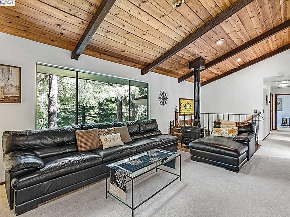 Mountain Time, you can't help but relax here in this serene setting! A beautiful split-level home. Amazing front door w/glass art. Ornate iron stair rail, huge great room w/ wood beam ceilings, picture windows bring the outdoors in. Wood burning stove and a dining area for game night and entertaining. Kitchen has been thoroughly remodeled in 2021 and is amazing! Granite counters, tons of wood cabinetry in a cream finish, skylight, stainless steel appliances and wood beam ceiling & a door leading to the back deck, breakfast bar too. A spacious primary bedroom allows for a sitting area, lots of windows, wood beam ceiling, glass slider to walkway and updated primary bath too w/ frosted glass walls. 1 additional guest bedroom has a wall of built in oak shelving and huge window. Full updated guest bath on upper level. Lower-level features 3 bedrooms and an adjoining family room with wood burning stove.1 room w/ built in wet bar Large slider to the deck . Laundry room w/ a with a 2nd fridge and door that leads to the back deck. A bonus room below can serve as a yoga room, crafting room or study space. Front features level space for outdoor gazebo, patio space and games, sitting areas. Patio areas in acreage. Newer water heater, new front decking. Detached garage. A must see!
