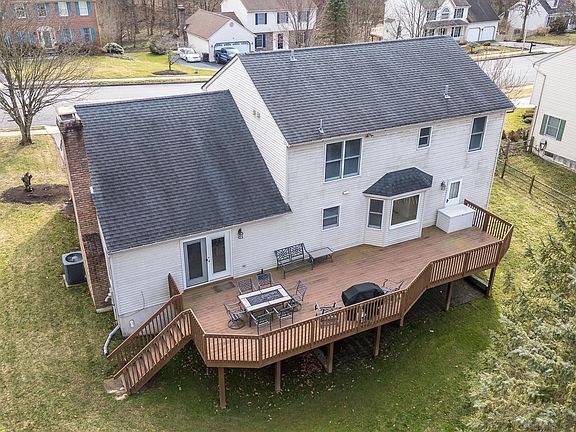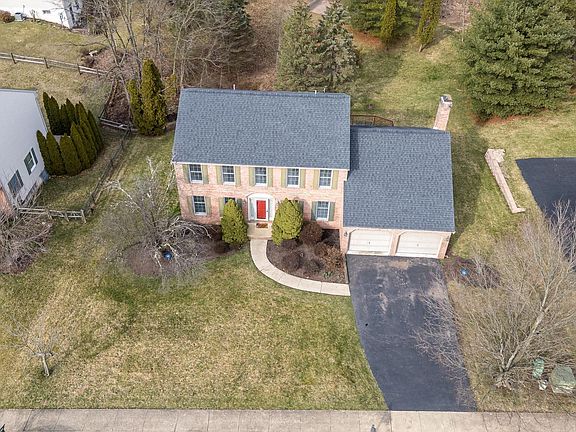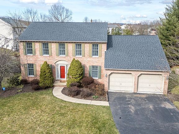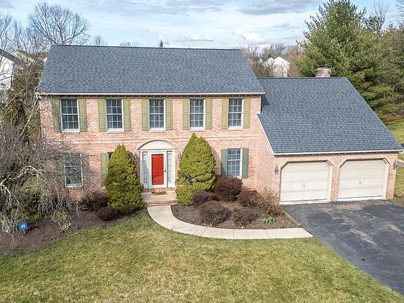 With almost 2600 sq ft of living space plus a HUGE walk out basement, two car oversized garage and immense rear deck overlooking open space and trees this home is one you will not want to miss! Center hall brick front colonial custom built by Chester Scholl offers a large formal living and dining room, expansive kitchen with stainless steel appliances, peninsula bar seating, center island with butcher block top, and timeless raised panel oak cabinetry. Kitchen opens to gorgeous cathedral ceiling family room with floor to ceiling brick fireplace and patio doors leading to rear deck. First floor laundry and powder room. Dining room has wood floors with lovely moldings and trim (chair rail, crown molding, wainscoting). Ceramic tile from foyer through kitchen-breakfast room, and laundry. Second floor offers four bedrooms, two full baths (both with double vanities). Ensuite master wing boasts a walk in closet bigger than most bedrooms with an adjoining walk in cedar closet. The full basement is walk out to the rear yard with great height and ready to finish to your specifications. Public utilities, natural gas heat, central air and an unbelievable setting with babbling brook and private rear yard. Outstanding curb appeal.