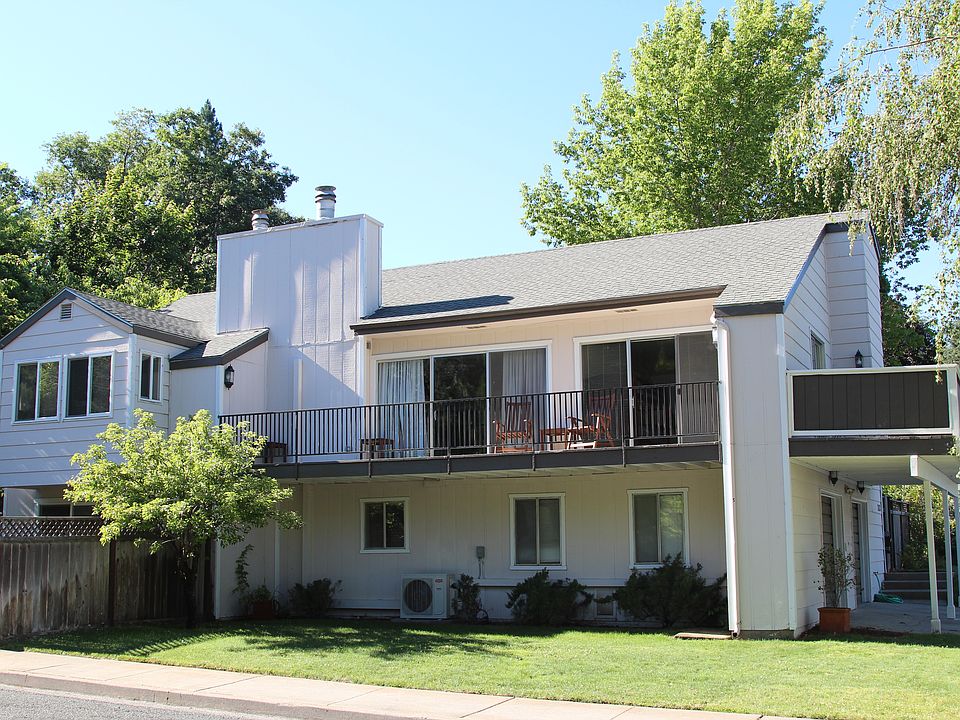 Two story downtown Mt Shasta home with fenced yard, fruit trees and room to stretch! This home has a large master suite with a real fireplace and s sitting area. From the living room, and the second master bedroom, there is a slider to and exterior deck for relaxation and for a mountain view. The kitchen is manageable and equipped with a garden window and a bar, where guests and family can dine informally, or watch the cook. Everything about this house is a combination of the past and the now. Fabulous mini-splits silently heat, and cool, the house. Walk downtown for shopping from this lovely home located in one of the best areas in Mt Shasta, known for its cozy homes and its proximity to all things local.