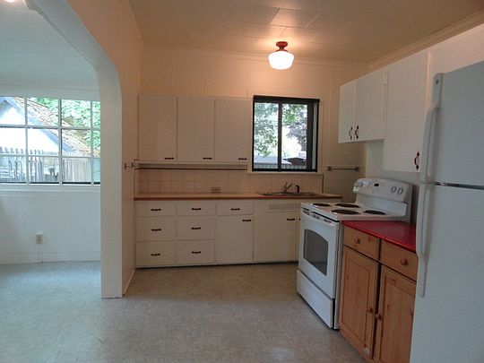 Classic historical home in south Sandpoint. Well cared for 2 bedroom 1 bath in same ownership for 35 years. Originally located where the Sandpoint Post office is, and relocated to this spot 2 blocks from the river and swimming pier on 3rd. Two bedrooms and one full bath on main level, upstairs is two rooms with hallway between. Recent paint, carpet, bathroom has been updated with tile floor, tub-shower with tile and glass doors. Wall of windows in room next to kitchen would be nice eating space. Original wood floors under carpet. Concrete patio in back yard, huge trees, small shop and storage in back. 1/2 block from SPOT bus stop. $169,900 Call Kathy 208-255-9690 #20141609