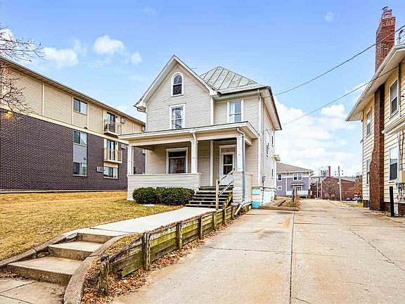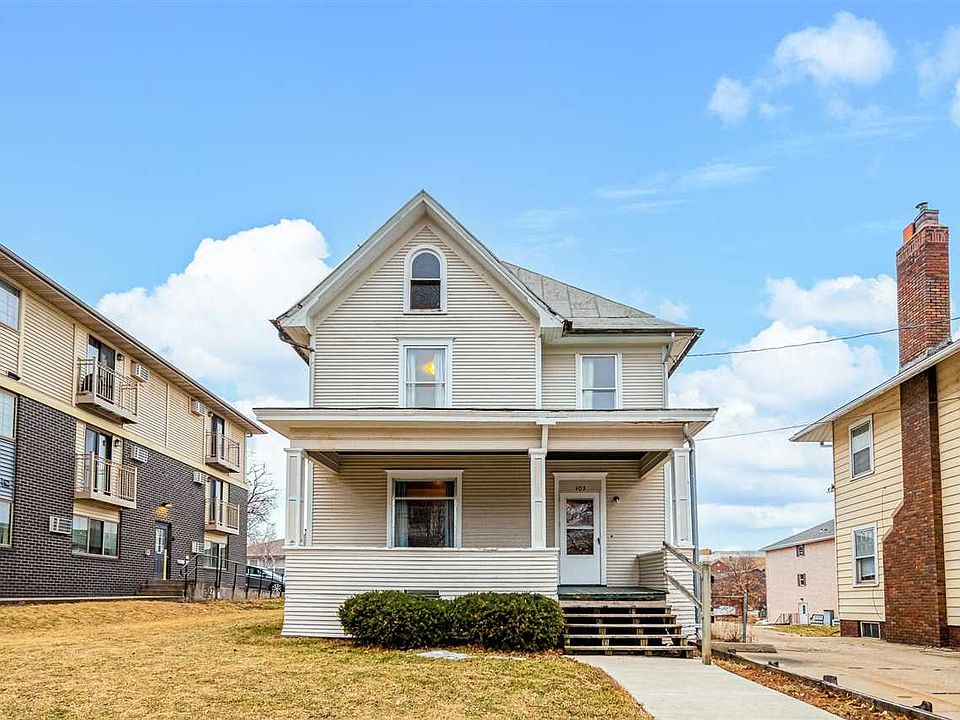 Typical Four Square with front porch. 1900 solid woodwork classic character with original hardwood floors.