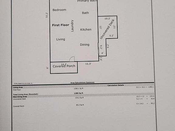 - Total interior livable area: 1,280 sqft