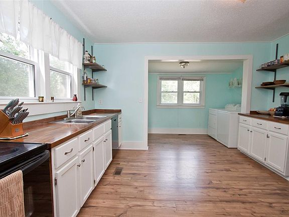 This adorable 2 bedrooms, 1 bath home is immaculate and move in ready. Kitchen has been updated as well as the bathroom. Laminate and hardwood flooring are throughout the house and hardwoods in the bedrooms have been refinished. The bathroom has ceramic tile floors as the does shower. There is also a large laundry area just off the kitchen. This home has lots of windows for a light an airy feel with a great covered front porch to sit on and enjoy the outdoors. The backyard is fenced on 3 sides with outbuilding for extra storage and 24x24 garage in the front. The roof was replaced in 2015! The appliances pass with sale including the washer and dryer. Don't miss out this gem!