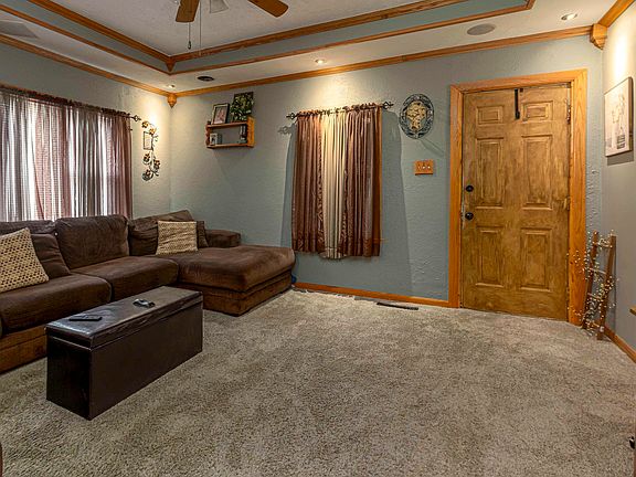 This adorable, move-in ready home checks all the marks. With numerous updates, great location, and priced to sell, it will not last long. The kitchen offers beautiful wood cabinets, island with solid countertop, breakfast bar, and pantry. Waterproof vinyl plank in kitchen and bath. Upstairs you will find two bedrooms and plenty of storage. Closet area extends behind bedroom wall. Full bath updated with tiled shower area and heated jet tub. Step out the back door and fall in love with the beautiful deck and large, fenced in back yard. Beautiful Morning Glory flowers adorn the fence. Garage is used for storage only. Alley access in back. Located within minutes of city park, aquatic center, and schools. Lovely landscaping with lights on timer.
