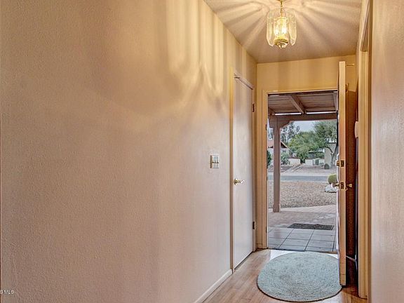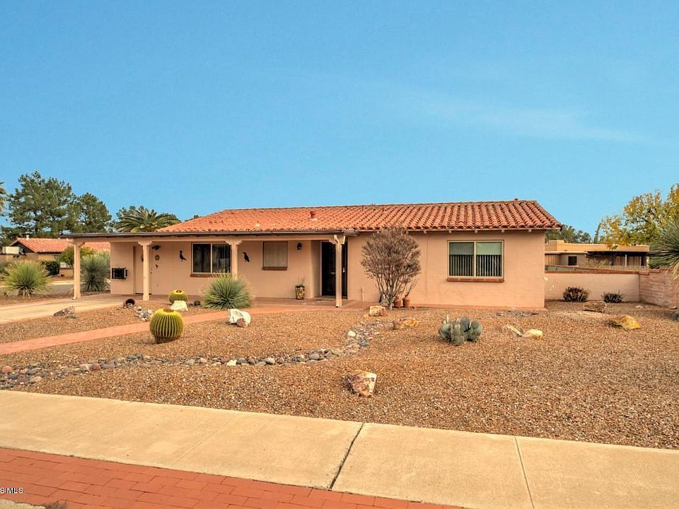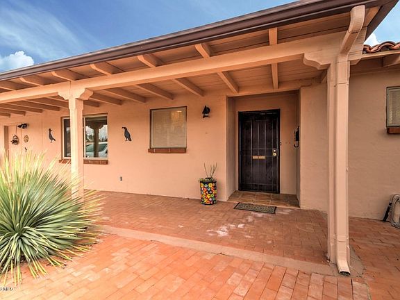 This is a great home on a corner lot with mountain views and a completely fenced back yard for entertaining. From the moment you walk in all the natural light draws you to the great room. The high ceilings and rock fountain just add that bit of extra appeal. The kitchen has unique built-in wine storage, lots of cabinets and counter space. The den/office, which can also be a third bedroom, has built-ins and a view of the back yard. The master bedroom has built-ins and an updated bath with a walk-in shower. There is even a double sink in the laundry room. The home has a golf cart garage and the storage area in front of it used to be a 1 car garage.