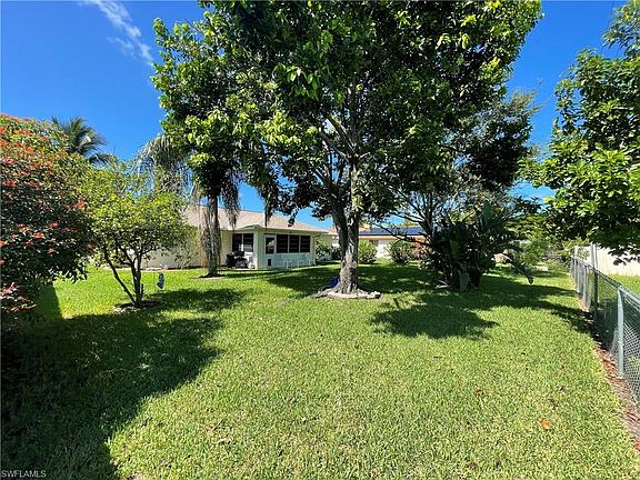 FANTASTIC LOCATION right off of Santa Barbara Boulevard close to the Publix, Target, restaurants, shops and Veterans Memorial Parkway. This beautifully maintained 3 Bedrooms, 2 Bathrooms, 2 car garage home is fully tiled throughout and features a new roof (2020), Newer A/C Unit (2015) and a fully fenced backyard, (chain linked) with plenty of room to add a pool. There is an inside laundry room and spacious Florida room under truss. ASSESSMENTS PAID. Garage has 220 hookup great for a future electric car charging station. The home is available fully furnished (negotiable) and will be a pleasure to show.
