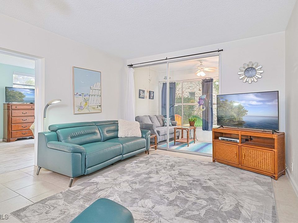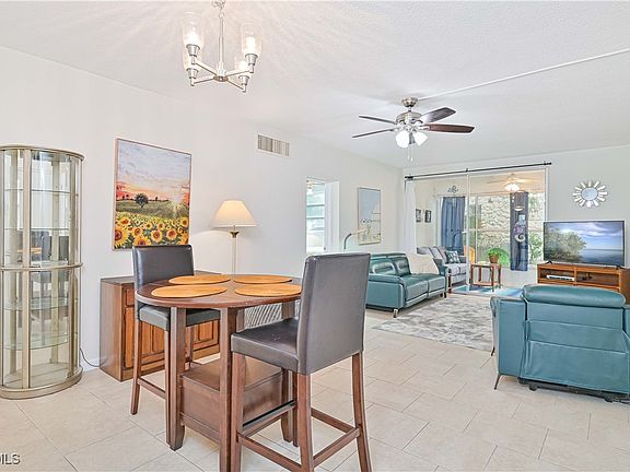Welcome to Country Club Estates! This light and bright ground-floor condo offers an inviting blend of comfort, convenience, and Florida charm in the heart of Cape Coral. Featuring 2 bedrooms and 2 full baths, this spacious residence showcases tile flooring throughout and an abundance of natural light from large windows that fill the home. The updated kitchen includes a breakfast bar, plenty of cabinet and storage space, and a cozy eat-in dining area—perfect for casual meals or entertaining guests. Step outside to the screened lanai and enjoy your morning coffee while overlooking the peaceful, landscaped surroundings.