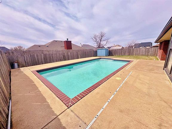The trifecta: a beautiful house in a great neighborhood that is priced to sell! Welcome to 403 Lancelot Lane in prestigious Regal Estates on Lawton’s east side! The seller spared no expense in updating this exceptional home and it now features: Fresh paint throughout, new woodwork, interior doors, 2" faux wood blinds, remodeled hall bath, completely redone kitchen with a most fitting (for a home in Regal Estates) color palette: stunning royal blue on the bottom and white on top cabinetry, near new stainless steel appliances with a refrigerator that stays, new sinks in primary bath, luxury vinyl plank flooring throughout, a new roof and a freshly acid washed in-ground pool that is ready to be filled for endless summer fun and frolic. Wow! This gem has 4 good size bedrooms, 2 baths and a 2 car garage boasting right at 1900sf. You will love the 11ft ceiling in the living room and the granite tiled fireplace with wood mantle framed by two windows that overlook the back patio and pool area in a privacy fenced back yard with a shed that also stays. Nice! Blue ribbon awarded MacArthur Junior High and High Schools are around the corner and Fort Sill is only a 7 minute drive away. Welcome Home! Please contact the REALTOR you have a written agreement with or if unrepresented call or text Stefanie Johnson at 580 583 5238 for more information or to schedule a showing.