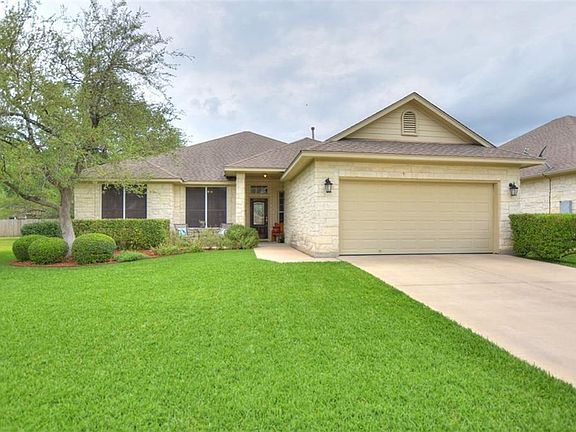 This home is a tucked away gem in a quiet neighborhood right next to town. Texas Traditions and its flawlessly maintained landscaping will welcome you and your guests. This open concept home is airy and bright with beautiful granite countertops and large kitchen along with 2 outside sitting areas, front and back. This home also invites you in with the high ceilings that make it feel grand. The Living Area offers niches for you to exhibit your special pieces. This established home has all sides stone, mature landscaping with beautiful trees that is hard to find in newer neighborhoods. The amazing trail system is a short walk, perfect for this active 55+ community. Come View Today.