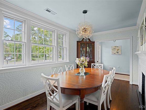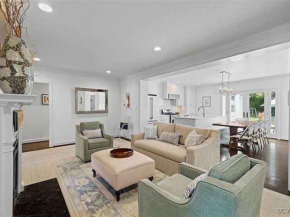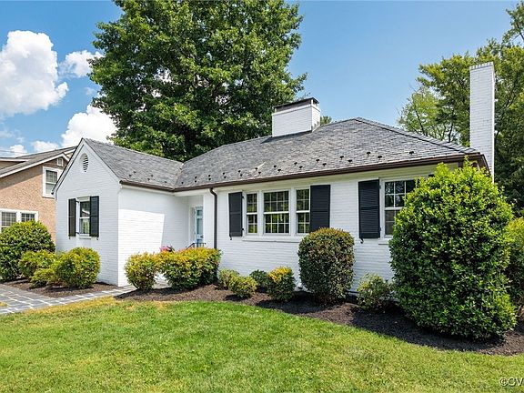 One-level living in the heart of Westhampton! You won't believe the space that this charming brick/slate home has to offer! Significant renovation and expansion have transformed this 2,659-SF home to include 5 bedrooms and 3 full baths, making it perfect for families or empty-nesters. With lustrous hardwoods and fresh paint throughout, the stylish interior offers a beautiful new eat-in kitchen with quartz counters, stainless steel appliances, farmhouse sink and abundant cabinetry. A pretty dining room shares a fireplace with the living room, open to a wet bar, family room and dedicated office, both with French doors. Along with the roomy primary bedroom with ensuite bath, there are 3 bedrooms plus a guest suite. A laundry room has cubbies and cabinets and doubles as a convenient mudroom with door to the exterior. Across the back, French doors access the private courtyard, walled terrace and fenced backyard. The deep lot has alley access, providing bonus potential for adding a garage. Updated systems, new windows, custom blinds. Fantastic location in the coveted St. Christopher's neighborhood, close to restaurants, schools, shops and all the offerings of the Libbie/Grove area.