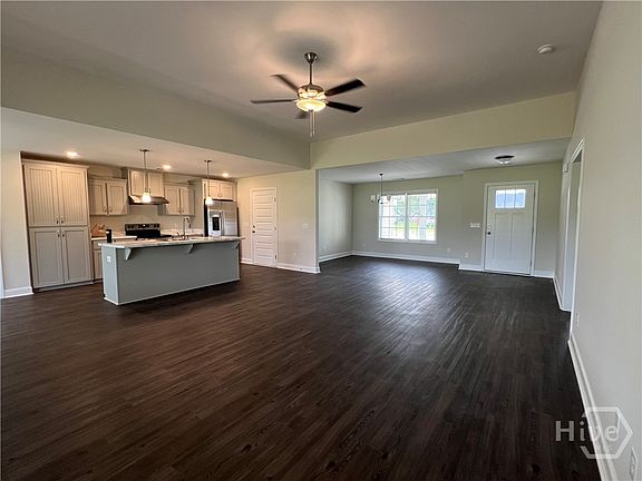 Welcome to this move-in ready home! This 4 bed 2 bath home is situated on a beautiful .5 acre lot in River Bluff S/D in Ellabell. Large front yard & back yard. Just 7.4 miles away from Hyundai Motor Group Meta plant, close to Costco Wholesale, Tanger Outlets Savannah, Pooler, Ft Stewart. This home features hardwood floors throughout, w/carpet in all 4 bedrooms. Open concept, eat-in kitchen w/stainless appliances include double door refrigerator & plenty of cabinet & counter space. Blinds are pre-installed on all windows. Good size walk in laundry room. Large formal dining room, neutral color & 10ft high ceiling creates a lovely calming living room. The primary suite includes 2 large his & hers walk-in closets, Ensuite bathroom w/dual vanities & 6ft tub shower tiled combo. 2-car garage w/epoxy coated floor. Wireless garage door opener keypad. Covered front & back porch extend indoor to outdoor living.