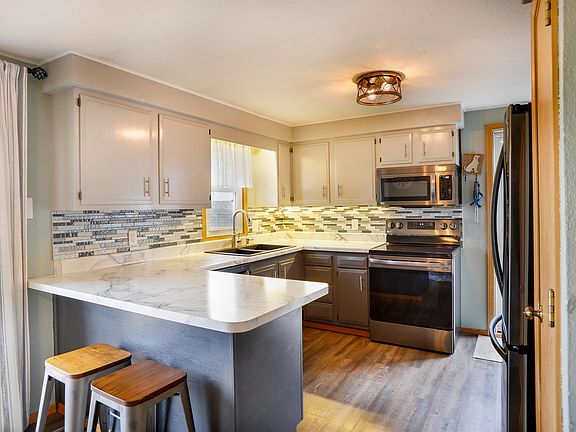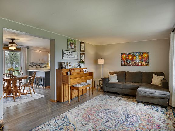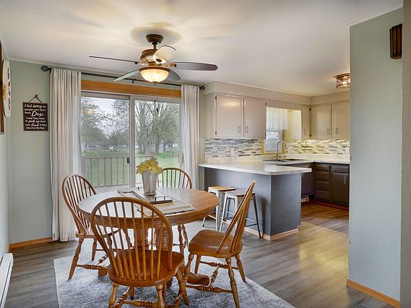 Ranch home featuring 3 bedrooms, 1 bath, kitchen, dining room with sliding doors to the deck overlooking the backyard, living room, unfinished basement with laundry and plenty of room for storage, and a 2 stall detached heated garage equipped with an Ev Charger. Updates include: 2020-Kitchen remodeled with new Counter Tops, 2022-New Vinyl Siding, last 3 years -Windows, Washer/Dryer, Flooring, and Light Fixtures.