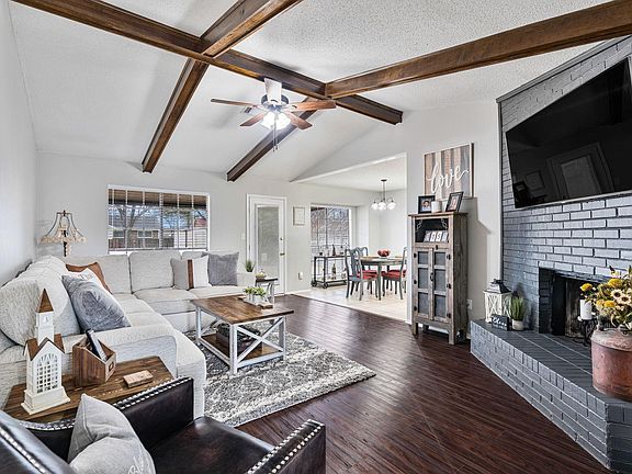Updates galore in this 3-Bedroom, 2-bath home conveniently located within walking distance to Daniel Pratt Elementary School. Includes freshly painted walls and trim; new 2 ½" faux wood blinds throughout; ceiling fans; spacious vaulted family room with fireplace; dining area with bay window; large master bedroom with walk-in closet; new energy efficient stainless steel microwave, dishwasher and self-cleaning oven; carpet, tile, and vinyl plank flooring; large fenced backyard with large covered patio, and outside storage building; garage; and new gutters. This is a must see and won't be on the market long at $185,000!!!