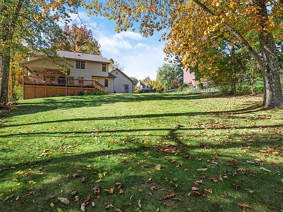 Nestled on 1 acre of wooded & private land, this custom built colonial is just outside of Moraine State Park in desirable Acorn Woods plan. Perfect curb appeal thanks to the wrap around front porch & the New Roof in 2020 stands out right away! Gleaming hardwoods meet your guests in the entry; featuring white trim throughout, wood stair risers, & sought after first floor office. Hardwoods flow into the spacious kitchen with antique look distressed cabinetry, exotic granite counters & backsplash, undercabinet lighting, & newer stainless steel appliances that are approx 5 years young. The family room features a wood burning fireplace w/gas available & opens to the amazing covered back deck. The view and privacy is amazing and enjoy both a oversized shed/barn as well as walk-in storage under the deck! Upstairs features a vaulted owner's suite, walk-in closet, dual vanity with granite counters; guest bath has granite dual vanity, walkout finished gameroom with extra storage, Pella windows!