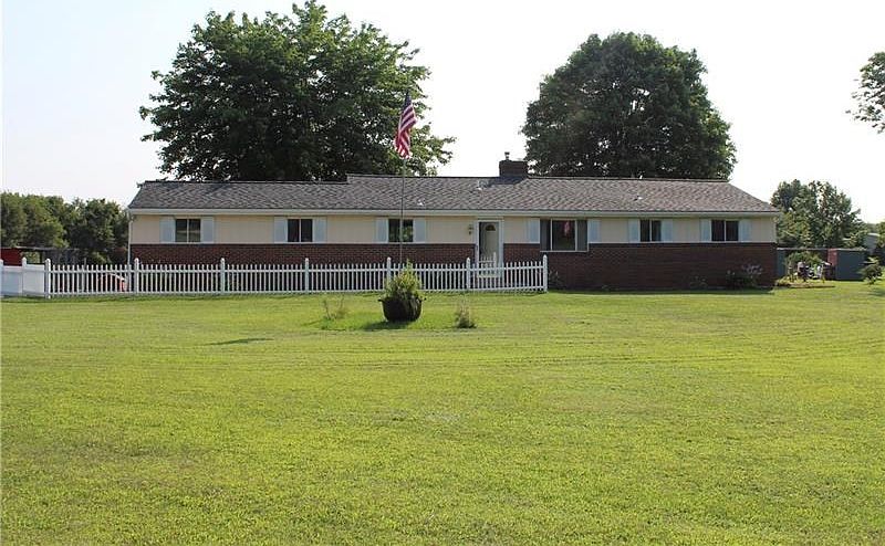 Welcome to 403 Stone Church Road in Slippery Rock School District. This 3 bedroom 2.5 bath home sits on a peaceful corner lot. The large front yard is flat and great for outdoor activities. As you enter you have the convenience of one floor living with a spacious open floor plan featuring the kitchen, dining, and living room. 3 nicely sized bedrooms and a den are also found on this floor as well as 2 full baths, one located off of the master bedroom. Enjoy family gatherings by the wood burning fireplace or venture outside to the large deck for a family barbecue. Head on downstairs to the walk up basement which is spacious and ready for you to turn it into whatever you choose. Possibilities are endless! Besides the attached garage, you will find an on site 2+ car detached garage as well as a shed and dog kennel. Plenty of space for outdoor living and activities. Home features a Kinetico water system with a reverse osmosis water filter. Close to Major roadways and Moraine State Park.