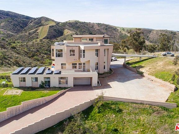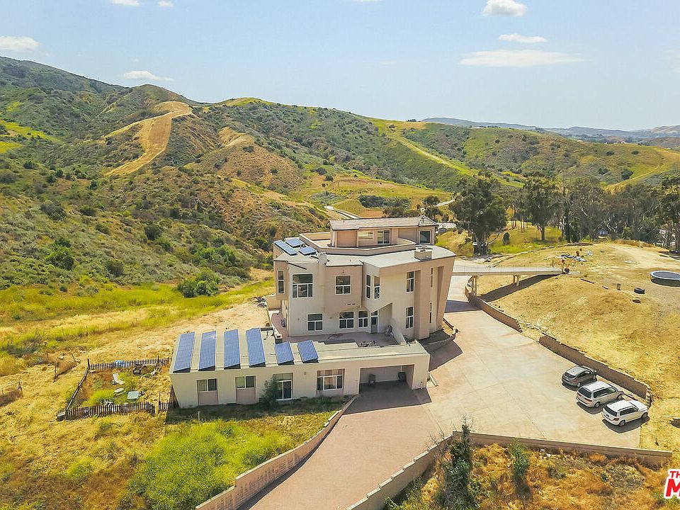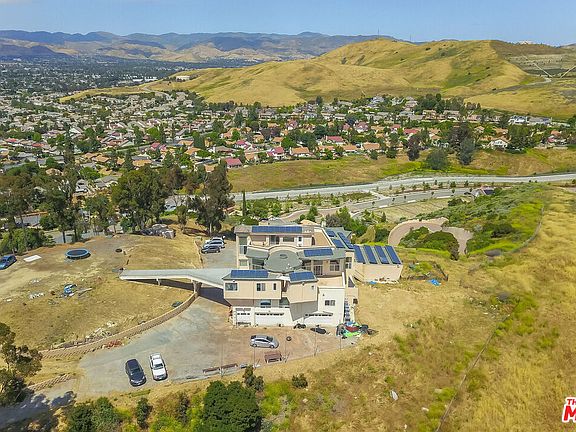 Your private 10-acre estate is waiting for you! Embark on a magnificent drive up your private driveway and take in stunning views of Simi Valley from any direction. A unique design of this tri-level home provides the opportunity for multi-family living or other uses. Throughout the main residence, there are 8 bedrooms and 8 bathrooms. Each of the 1st and 2nd floors offers 4 bedrooms and 2 bathrooms, as well as large chef kitchens and separate family rooms equipped with built-ins and beautiful fireplaces. The building has elevators that go to all three levels. Enjoy California sunsets from your private balcony while enjoying a picturesque view of the city. Furthermore, the home features 86 solar panels, generating an average of 31,000 kWh per year. In addition, your home has a 7-car garage for all your vehicles and toys. From the main house, you can access an extra blank canvas (imagine an infinity pool) on flat land. Bring your architects and designers and make this home your own!Furthermore, there is also a private 4 bedroom, 2 bath guest house, which can be used as a rental property.Lot splits are allowed with a minimum of one acre in RE zoning. In order to learn more about future development possibilities, buyers should speak to the City of Simi.
