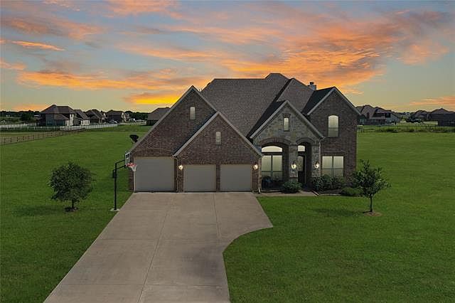 Incredible 2 story Stonehollow home located on over 2 acres of land with a gorgeous exterior and an oversized 5 car garage! This immaculate home boasts 5 beds, 4.5 baths, a media room and game room! Stunning interior with soaring ceilings, flowing floorplan, hardwood floors, plush carpet, base molding and 2 inch blinds throughout. Exquisite entry with transom windows, decorative lighting and a spiral staircase with wood trim and iron balusters. Guest suite with ensuite bath, private study with French doors & half bath upon entry. Grand living room with stone-surround wood-burning fireplace. Gourmet eat-in kitchen with top-notch features including large breakfast bar island, stainless appliances, pot drawers, coffee bar & more! Charming master bedroom with tray ceiling, walk-in closet and a luxurious master bath with oversized soak tub and walk-in shower. 3 spacious split bedrooms and 2 full bathrooms upstairs. Boundless backyard with covered back patio. Blue Ridge ISD.