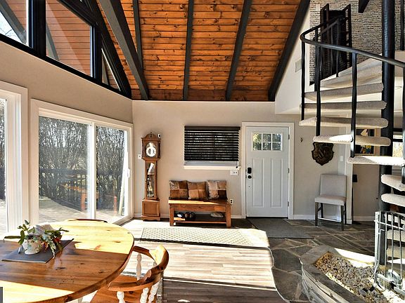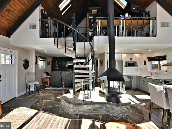 Panoramic views that go on for miles! Two large decks, one off the master bedroom and one off the first floor make this home amazing for entertaining or just enjoying the beautiful views! The first floor has new windows with custom blinds. There is a gorgeous newly renovated kitchen, complete with white quartz countertops. The large living/dining space creates a wonderful open concept space perfect for entertaining. The first floor also has a bedroom and full bathroom. There is a den/office space available on the first floor adjacent to the large laundry room and entrance to the garage. Up the spiral staircase you will a beautiful loft that can be used as a living area or office space. The master bedroom and bath have access to the rooftop deck. Welcome Home Upgrades: 2023: New Heat Pump Installed, 2022: Gutter Guards, Windows on back of house, Water softener installed, UV Filter installed on well, side fence installed Seller has ring cameras in the house