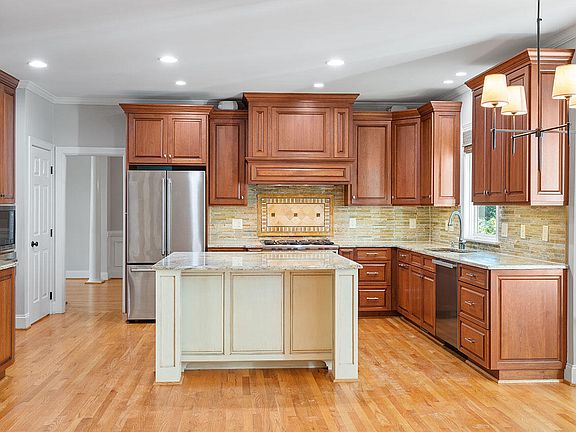 Experience the epitome of elegance in this stunning 4,970 sq. ft. brick transitional home! The gourmet kitchen is a chef's dream, complete with custom cherry cabinets, a Wolf gas range, a warming drawer, and stainless-steel appliances. Spend your fall evenings relaxing or entertaining on the spacious screened porch. With 4 bedrooms, 4.5 baths, and a full basement featuring a craft room, gym, and game room, there's plenty of room for everyone. A separate workshop and unfinished space above the detached garage offer endless potential for a man cave or studio. The beautifully landscaped yard completes the picture. The kitchen refrigerator, washer, and dryer convey with the home. Located in the highly sought-after Wessex neighborhood, this home offers ultimate convenience, equidistant from both downtown Durham and Raleigh—just 20 minutes to each, and only 10 minutes to downtown Cary. Enjoy being steps away from access to greenways, paved walkways, and mountain bike trails, connecting you to Umstead Park, North Cary Park, and Lake Crabtree.
