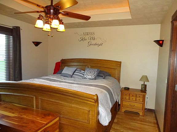 Custom built walk-out ranch with so many extras. Outstanding great room on main with a beautiful kitchen. Walk in pantry, vaulted ceiling & walkout to covered deck. Master suite includes tile walk in shower, walk in closet & really nice tray ceiling. Large mud room includes a laundry & 1/2 bath connected to the HUGE heated garage with additional 16x20 shop space & another 12x19 garage below that. Lower level family room features a really nice tiled wet bar, gas fireplace & walkout to a concrete patio. There is a very large parking pad by the garage for the larger RVs. All 3 baths have timer controlled heat & tiled floors. This property also includes a 6 person hot tub that goes with the house that is located on a concrete pad. All appliances are included as well as the washer and dryer! Close to all shopping in town as well as both schools for your convenience! There are so many extras here, you really must come and see for yourself!