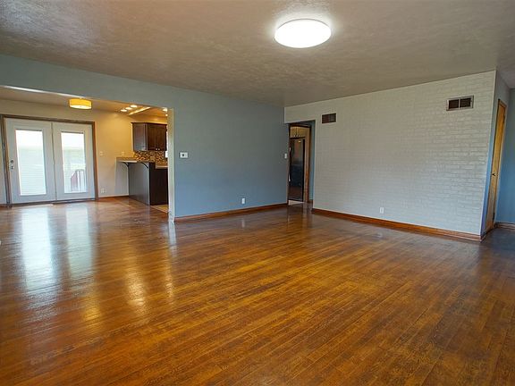 Refreshed 3 bedroom, 1 bath, 1448 sq ft home on a double lot with a full unfinished dry basement, 1 car detached garage, and storage bulding in a convenient location in Syracuse. 2 large decks that have just been stained and sealed; freshly refinished hardwood floors, new paint, landscaping and lighting. Newer hard surface kitchen countertops, cabinets with soft close doors and appliances. 90+% high efficiency gas forced air furnace with central A/C. Large kitchen with breakfast bar, connected to dining room leading to slider door out to deck and backyard. Large living room, ample sized bedrooms with walk-in closet in master. Economical living with low taxes and low utilities.