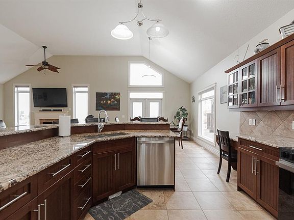 Amazing tree lined viewsExposed aggregate drivewayEpoxy floorsLed lightingBright main floorVaulted ceilingsGas fireplace