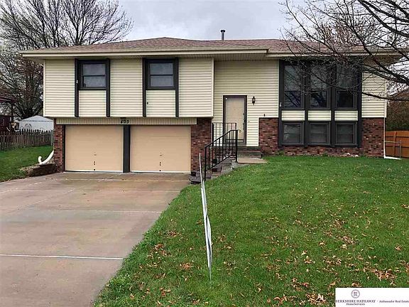 Papillion split level 3BR/2BTH home has been treated with loving care and is markedly bigger than most other splits! More than 1700 Square feet of finished space! Delightful sunny kitchen hosts a breakfast bar, looks into the dining area and oversees a mammoth backyard! New faucets, railing, shower head, new kitchen faucet, and a sparkling greenhouse built in 2020! How different is that? You want mechanicals and outside updates? Done: Maintenance free siding, partially fenced yard with sprinkler system, new roof 2017, new a/c 2019, new garage door opener installed TODAY. AND...newer sod, weather strips on garage doors and newer garage motor. Stretch out in your finished basement after yard work...and relish in....your.... new... home.