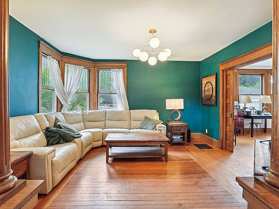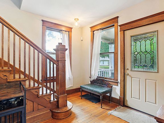If you are looking for old house charm, then look no further! This home features 10' ceilings on main floor, original oak trim, pocket doors and floors. Lots of natural light streams through the 6' windows. Updated kitchen features newer stainless steel appliance, Quartz countertops and marble backsplash. The master bath has an updated full bath of its own. There are 2 other bedrooms on the second floor as well as another full bath. The 3rd floor is finished and would make a good office or additional living space. The basement is partially finished and has room for lots of storage. Laundry room is located on the main floor with brand new washer and dryer (2024). The front porch was completely rebuilt in 2023. The backyard is fully fenced and has a beautiful patio space to enjoy on summer nights. The garage was originally a carriage house, but could hold 2 cars now or be used for additional storage space. Fantastic proximity to downtown Champaign, UofI, public Library and several schools. Added bonus high efficiency hot water heater, furnace and a/c units replaced in 2022. Radon mitigation system installed.