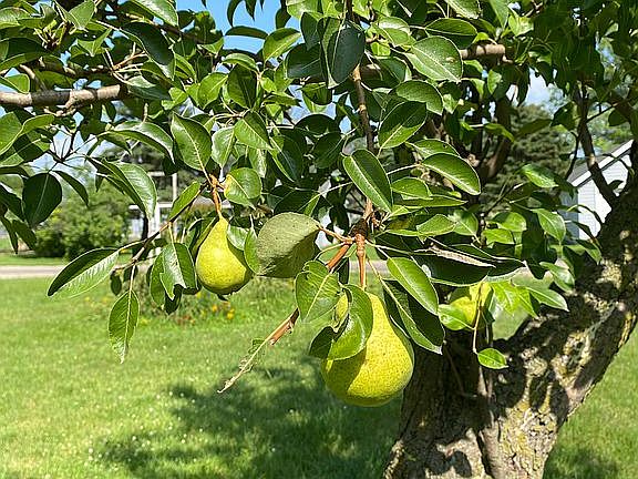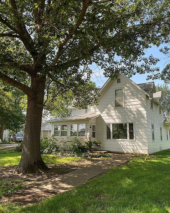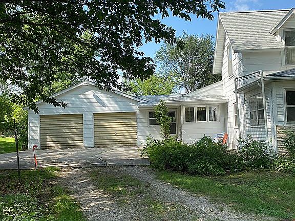 Older home to be sold AS IS. Very comfortable home that has been well loved. Large eat in kitchen with custom cabinets. Main floor laundry .Three season porch, main level bedroom. Double lot with many mature trees , pear and peach trees. Three out building for storage as well as a 2 car attached garage with work benches.