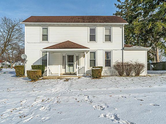 Situated on a tree shaded corner lot in the small town of Emden, Illinois, you will find this beautiful 3 bedroom, 2 full bath vinyl sided two story home! Main floor of home features a living room, formal dining room, den/office, kitchen with breakfast bar as well as island, sunken family room with a French door entry point, woodburner and supplemental electric baseboard heat, bedroom with two closets, two full baths (rear bath has heated tile flooring), and a conveniently situated laundry room area. Upstairs, you will find two additional nice sized bedrooms with abundant natural light and great closet space. Property also features a partial basement, covered front and side porch areas, private 14X23 patio area, rear attached workshop/storage shed, vinyl replacement windows, architectural roof, new water heater (2022), and a newer aeration septic system (2009). Come see what the best of small town Logan County living has to offer you and yours with 403 W. Market Street, Emden!