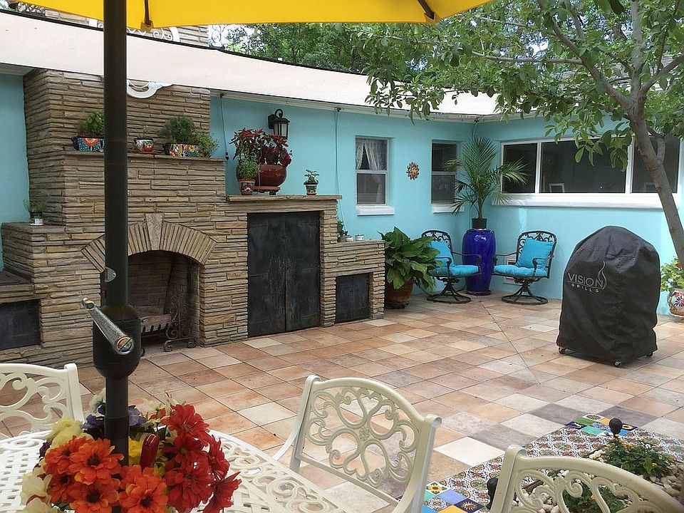Over 4500 sq ft of living area. Many custom features, carved french marble fireplace & inlaid marble hearth. Cherry hardwood floors in living room. 2 Large bedrooms with baths. Master bedroom is extra large with closet built ins. Tile floors throughout, remodeled kitchen. Utility room, formal dining, breakfast nook, lots of cabinets!! Parking and entrance to garage is off the alley.