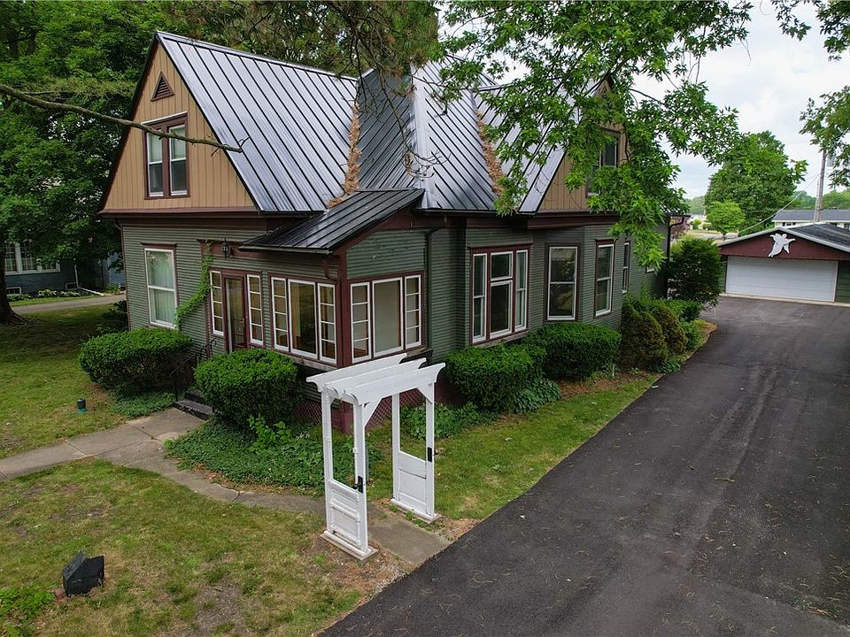 It's easy to fall in love with this 5-bedroom, 2-bathroom home in Catlin! This home was built in 1904 and has so much character. You will find pocket doors, hardwood floors underneath the carpet on the main level, beautiful wood trim throughout, and tall ceilings. You can cozy up next to the gas fireplace this fall. In 2020, the sellers installed a commercial-grade steel roof and a brand-new asphalt driveway. The exterior was completely repainted, and the water heater was replaced in 2016. The furnace was replaced in 2014, and the kitchen appliances are newer. There is an additional half-bathroom in one of the upstairs bedrooms that needs to be reconnected to the plumbing. The detached 2.5-car garage has a bonus workshop space connected to it. Call today to see this spacious, move-in-ready home!