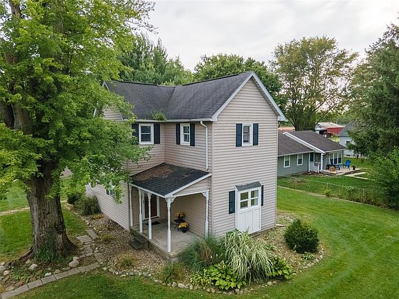 This Charming home on a corner lot is ready for you to move right in! 1 bedroom on the main floor with 2 bedrooms AND a loft upstairs. Home has fresh paint, carpets, and floors throughout. Bathroom has a brand new vanity and toilet. New furnace in 2021. Relax on the quaint and covered front porch. French doors open up to the backyard that features a fire pit and access to the large detached two car garage.