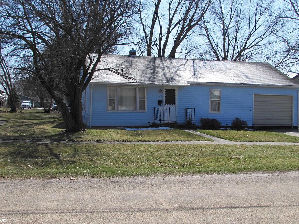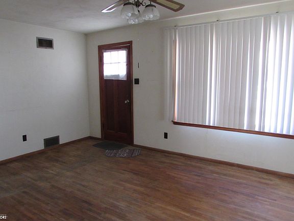 Looking to move to New London? Come look at this budget friendly all on one level home with a large 60'X 140' Lot. 2 bedrooms, attached single car garage. Original oak flooring in living room. Pine cabinets in eat in kitchen. Utility room with washer and dryer, newer furnace and hot water heater. Access to back yard wood deck, shade trees. Single car garage has outside door to back yard. Home includes: electric washer and dryer, refrigerator, gas stove, window coverings. Backyard swing and decorative pump.