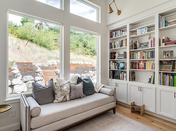 Desirable, Farmington east bench location. Spacious and functional rambler with open concept living areas. Situated on a beautiful foothill lot with a secluded backyard and great views. Plenty of natural light to complement the neutral color palate. Gorgeous modern gourmet kitchen with quartz countertops, large island, and expansive offset dinning area surrounded by windows and a walkout to patio and backyard. Beautiful amenities; wide engineered wood plank flooring, custom cabinetry, window coverings, and stone fireplace with custom built-ins. Master on main floor. Energy efficient home. Oversized 2 plus car garage. Close to freeway access, shopping, schools and entertainment. MUST SEE!