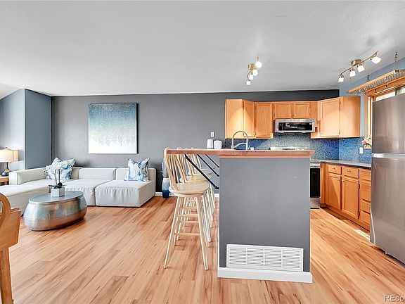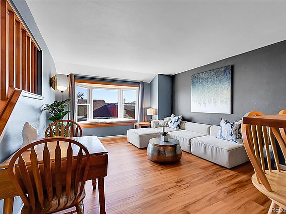 Welcome to Golden, “Where the West Lives”. Convenience, affordability, and opportunity await in this unique home defined by iconic views. Nestled in the heart of Golden, this property boasts an ideal location, allowing easy access to local shops, restaurants, museums, hiking, and biking. Imagine leisurely walks along Clear Creek or indulging in your favorite outdoor activities, steps from your front door. Stepping into the main level, natural light floods through the south-facing bay window in the living room. Perched upon a hill the windows to the property offer breathtaking views of downtown Golden, Lookout Mountain, Castle Rock high atop South Table Mesa, and Green Mountain rising gently in the distance. Luxury Vinyl Plank throughout the main level is not only a beautiful enhancement to the space but also provides a dependable and durable flooring option. The kitchen is a focal point for gathering, featuring a butcher-block breakfast bar with ample seating, vibrant backsplash, and newer stainless steel appliances. Preparing meals is a breeze while taking in the panoramic beauty that surrounds you. The kitchen seamlessly transitions out to the Trex deck, where you can savor your morning coffee, enjoy a quiet dinner, or entertain guests during one of Golden’s many festivals and events. Whether it's a quiet sunset or a vibrant sunrise, the deck provides the perfect vantage point. Ascend to the upper level, where both bedrooms await. The primary bedroom is situated facing south, with its own set of stunning views, showcasing the beauty of Golden. The second bedroom offers incredible versatility, serving equally well as a cozy sleeping space or a home office, adapting to your lifestyle. A full bathroom and laundry complete the upper level. When the need to drive arises, the owner will appreciate the 1-car attached garage as an additional amenity living downtown. Do not miss this rare opportunity to live the Colorado lifestyle in the heart of downtown Golden.