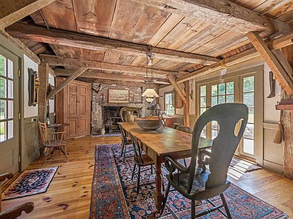 Antique 1790 Cape sits on a hill overlooking beautiful Upper Suncook Lake. Sit and enjoy the view from the screened in porch. This home features original pumpkin pine flooring in the livingroom, small dining room and bedrooms. It also boasts post and beam construction with Gunstock corners and 4 working fireplaces. Walking into large dining room you'll see a walk-in fireplace with swing crane and functioning pizza oven. This dining room is the original carriage house with antique carriage lift rigging. It also has a reproduction tavern room. The kitchen has a painted pine floor, a rare Rumford Broiler, soapstone counter tops and sink. It also has a walk in buttery/pantry. Secondary small diningroom has a vertical King's Pine paneled wall with beaded joints. Forged latches exists thru the home. Enter the livingroom and you'll view another walkin fireplace with crane, dutch oven and original 18th c built in cupboard. The first floor master has an original Rumford fireplace and ensuite bathroom with tiled glass shower.2nd bedroom on first floor has a hidden fireplace original to house. 2nd bath also has been updated. Back office with builtin desk and shelves. Second floor offers small bedroom and attic/storage. Timber frame out building could be office or guest house. Sitting on 14 acres open field and woods. 3 brick patios/hottub/garden shed and landscaping. 18 ft ROW to Upper Suncook across street for direct access. Long frontage offers max privacy between neighbors
