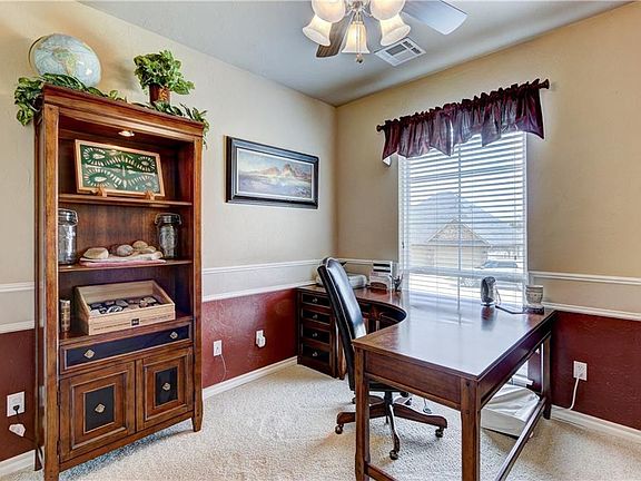 You will love this beautiful home with so many features and updates! Home has 3 Bedrooms, 2 full baths and 1 half bathroom, office, dining room, large living room and an OUTDOOR KITCHEN! Extended 3 car garage with large tornado shelter. Granite in kitchen with Silgranite sink. Incredible outdoor kitchen includes, grill, sink with water, storage, and a pergola for shade. Living room has built-ins, surround sound and gas fireplace. Alarm system, sprinkler system, timer for outdoor lights. Located in award-winning Choctaw school district and 5 minutes from Tinker Air Force Base. Eastwood neighborhood addition features a community pool, tennis courts and hidden walking trails. Don't miss this incredible home!